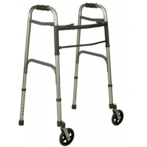 Questo girello ha due ruote anteriori piroettanti, che garantiscono massima mobilità.