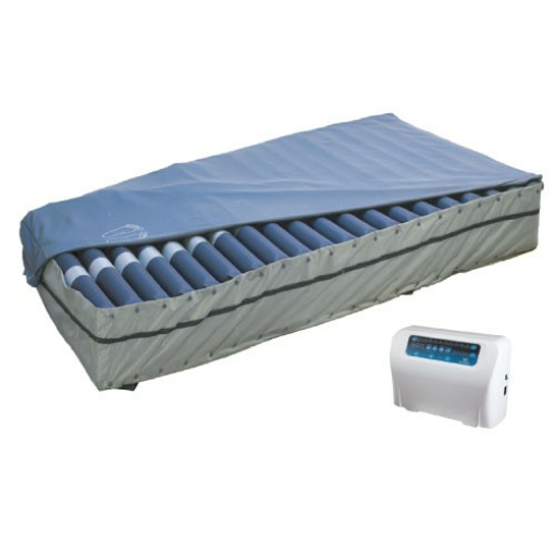 Termigea 9000+ 200 è un materasso antidecubito bariatrico, dotato di compressore per la regolazione della pressione. Il sistema antidecubito, con materasso ad aria a elementi intercambiabili, favorisce, con l’alternarsi dei punti di contatto con il corpo del paziente, la circolazione sanguigna ed una buona ossigenazione dei tessuti, prevenendo l’insorgere di piaghe da decubito. Il compressore è dotato di manopola che consente di regolare la pressione secondo il peso del paziente. Compatto e silenzioso, può essere appoggiato a terra o essere appeso alla sponda del letto grazie a due ganci di supporto. Il materasso è in PVC per uso sanitario, sottoposto a trattamento antibatterico. È costituito da 20 elementi intercambiabili, che si gonfiano alternativamente, fissati con bottoni a pressione, che facilitano l’eventuale sostituzione in caso di rottura e ne consentono la pulizia. Otto elementi centrali sono provvisti di microfori a bassa perdita d’aria in modo da permettere un riposo più comodo e asciutto. Il materasso è completato da quattro elastici agli angoli che ne consentono l’ancoraggio al materasso sottostante. È corredato da Valvola CPR, che serve per lo sgonfiamento immediato del materasso per interventi urgenti di rianimazione. La copertura impermeabile e traspirante è fornita di una cerniera lampo che corre lungo tutto il perimetro del materasso. Indicazioni: prevenzione delle piaghe da decubito in pazienti bariatrici costretti per lungo tempo a letto.
